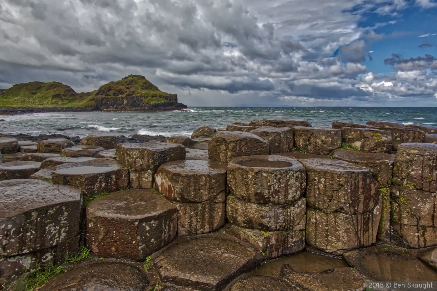After a very wet and stormy morning, the clouds parted to reveal this dramatic scene of a unique natural rock formation on the rugged coastline of Northern Ireland.
