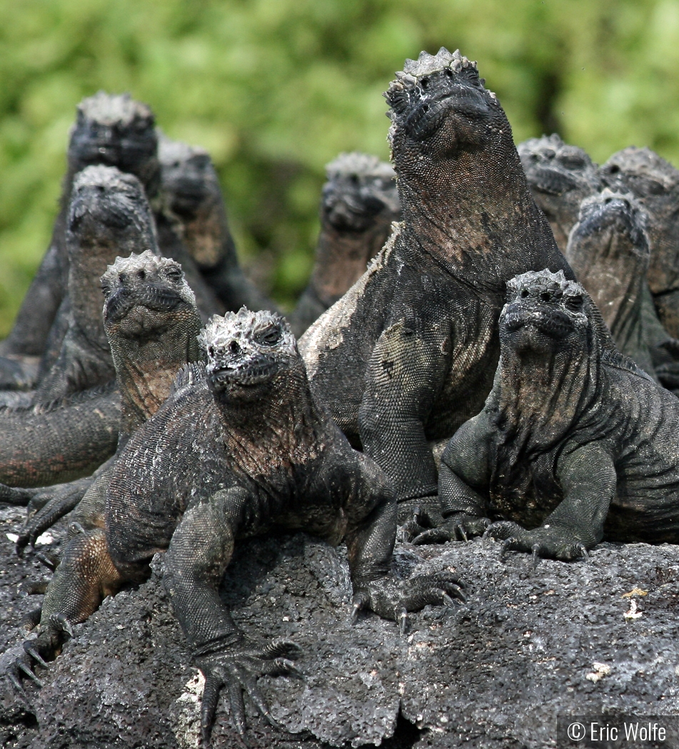 On many islands in the Galapagos, large groups of strange zombie-like iguanas gather to sun themselves on warm rocks.